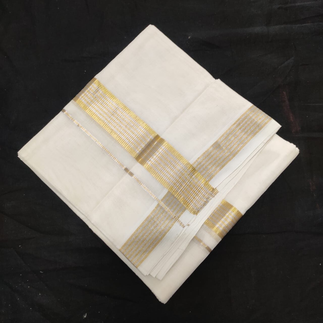 2″ Golden-Silver Jari Fancy Handloom Dhoti/Veshti