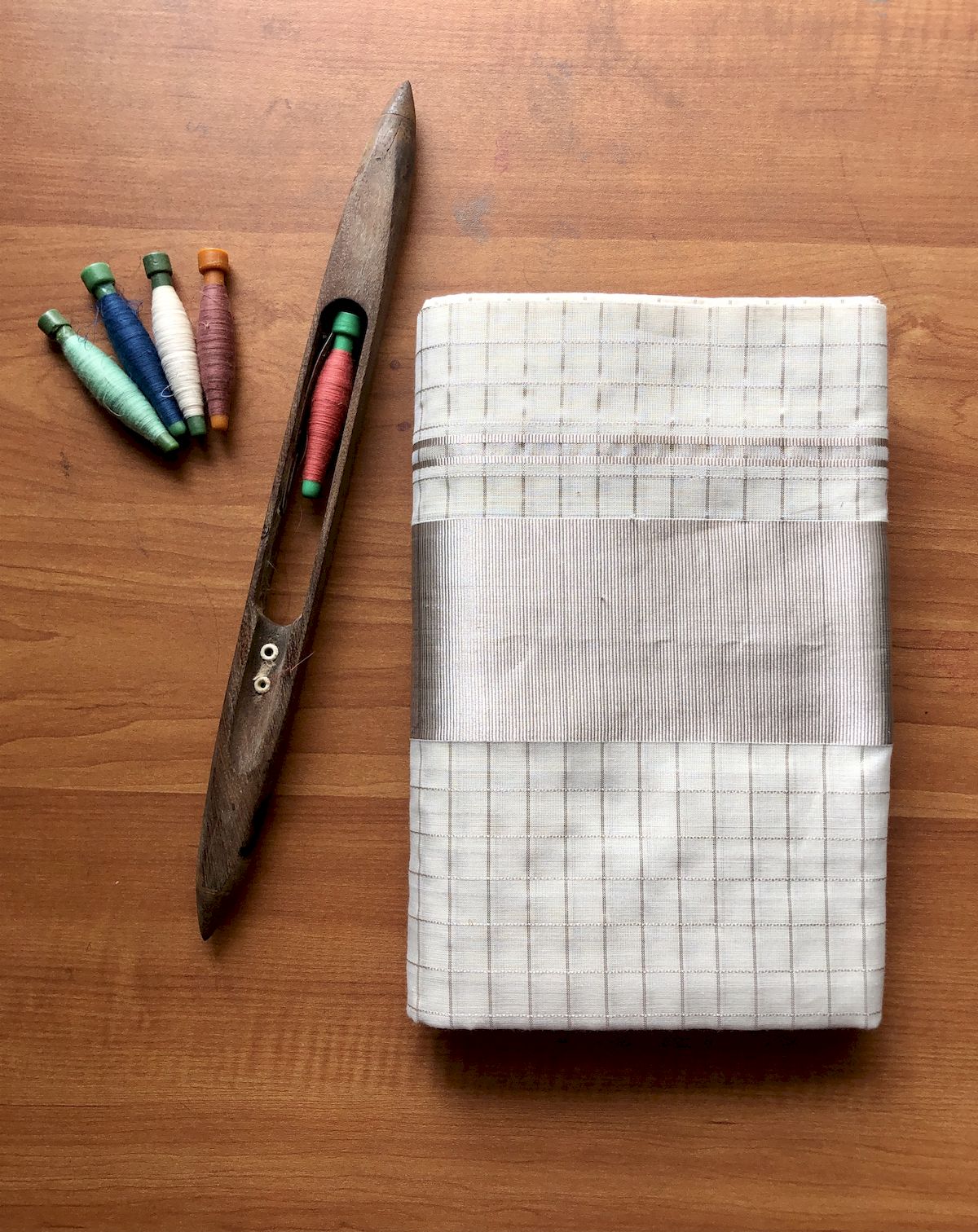 Home / Premium Handloom / Premium Set Mundu / 4.5″x4.5″ Silver Jari Fully Body Checkered Fancy Set Mundu