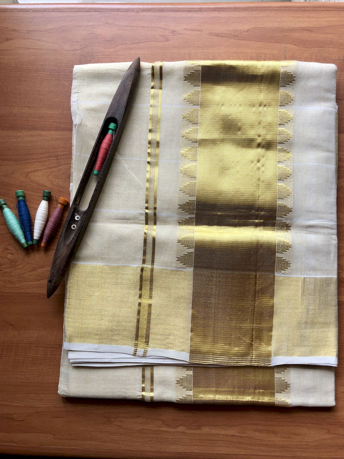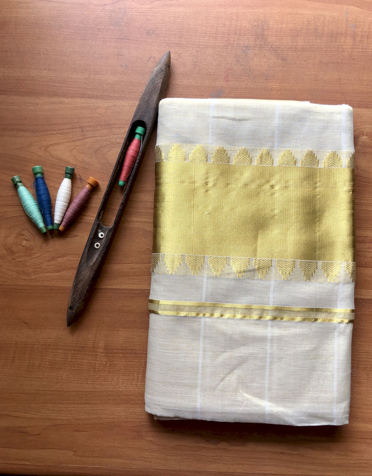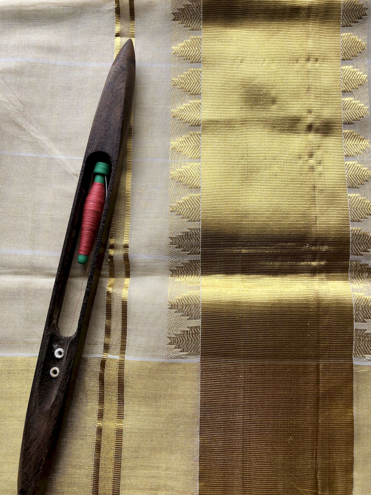 5.5″ Golden Jari Full Body Checkered Tissue Komma Design Saree