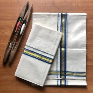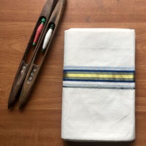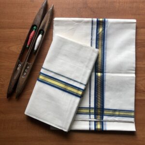Home / Premium Handloom / Premium Set Mundu / Blue Silver Printed Set Mundu