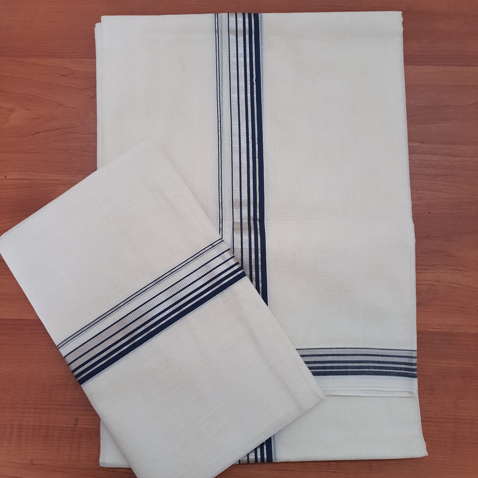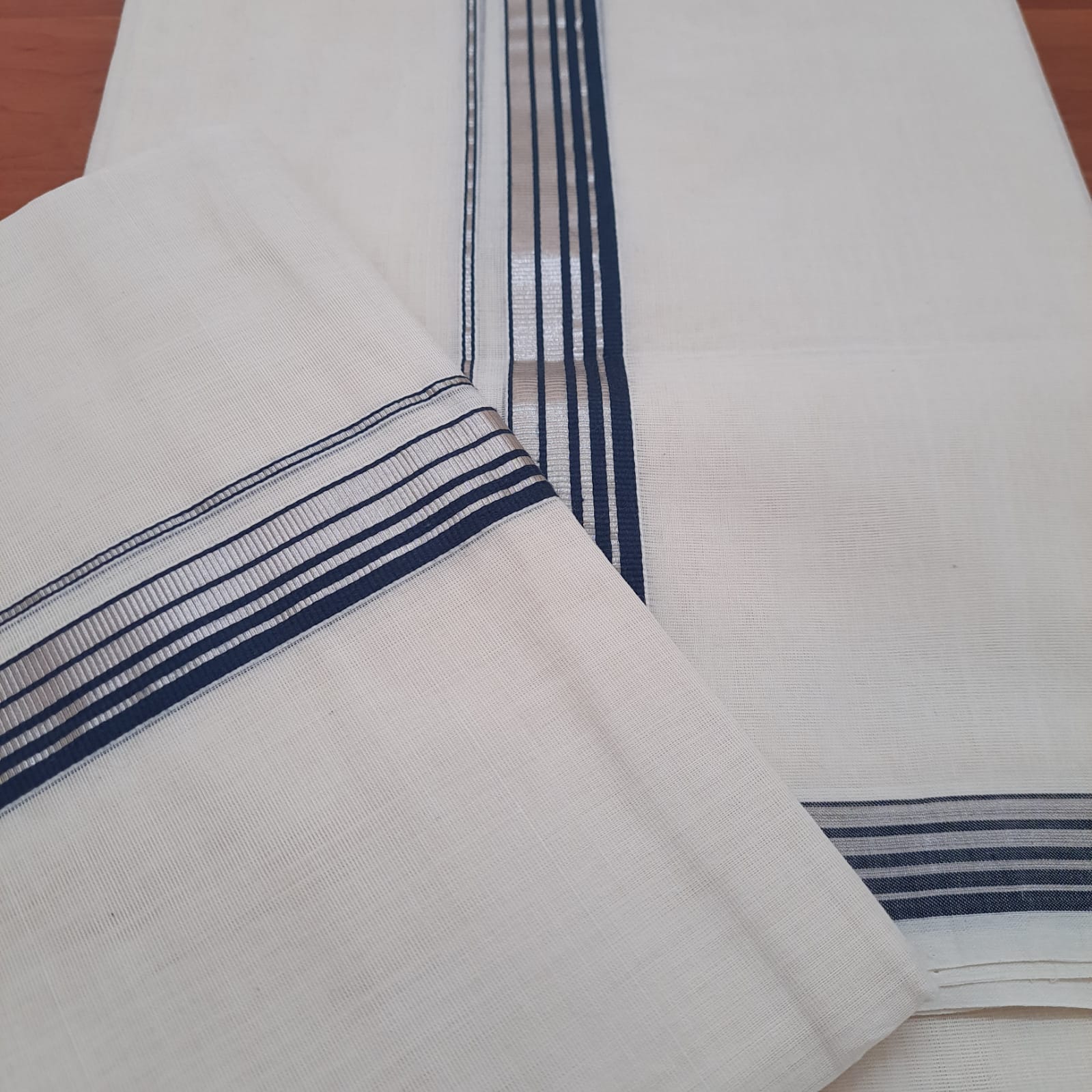 Home / Premium Handloom / Premium Set Mundu / Blue Silver Set Mundu