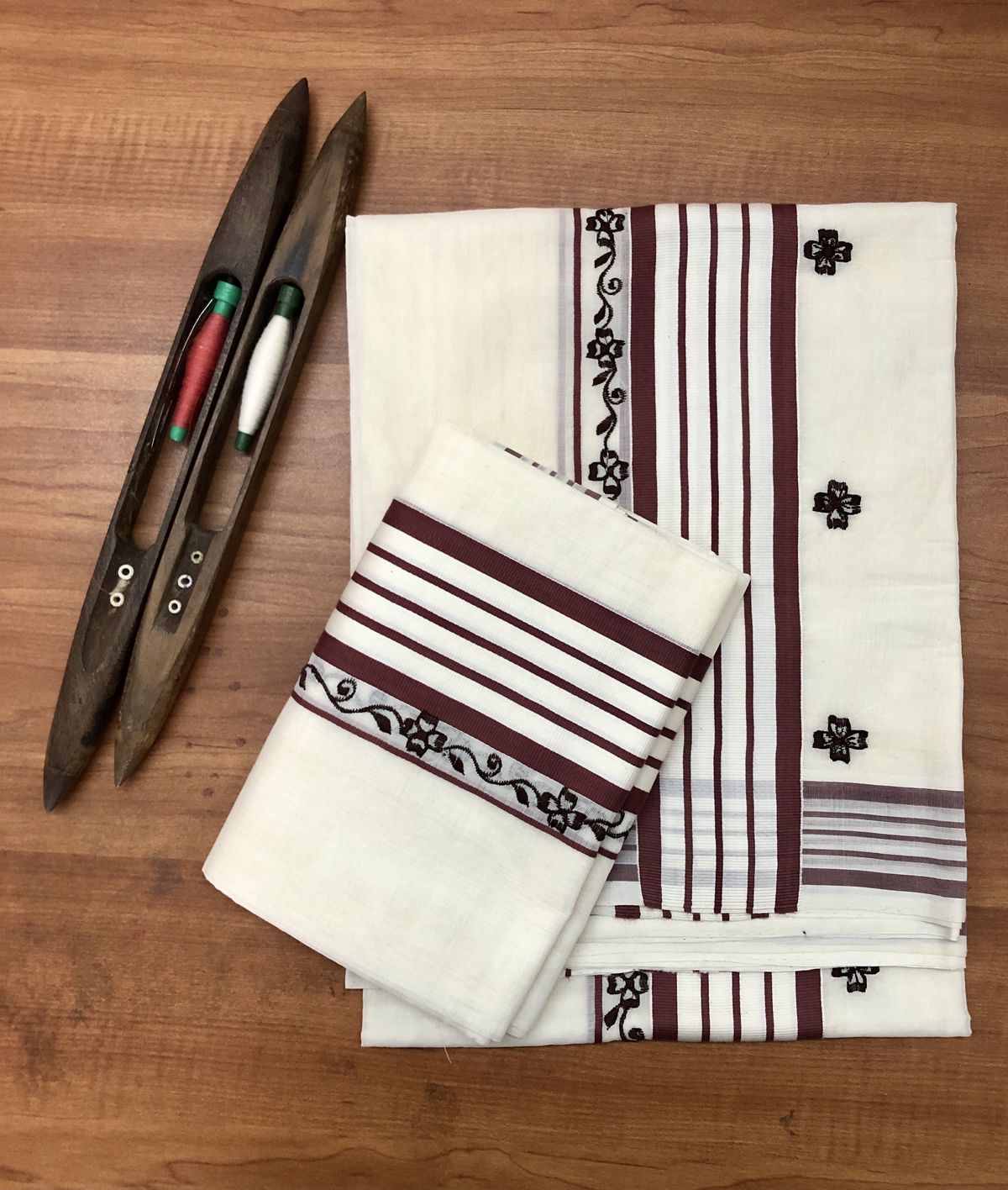 Home / Premium Handloom / Premium Set Mundu / Coffee Brown Embroider Designer Set Mundu