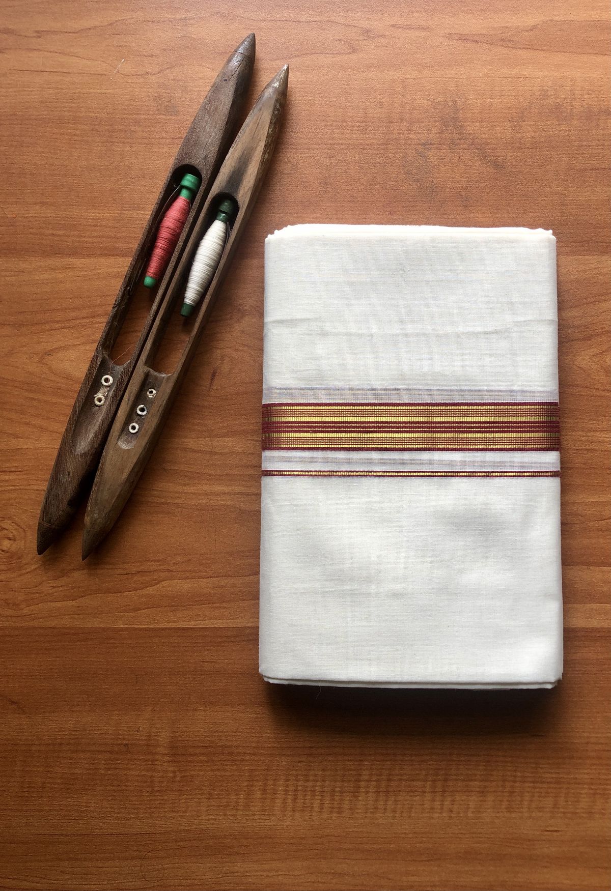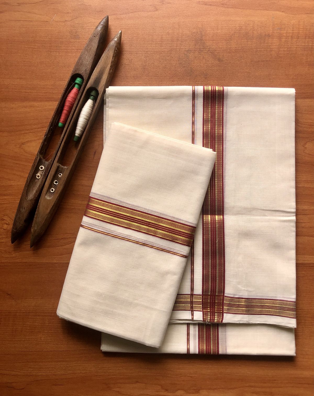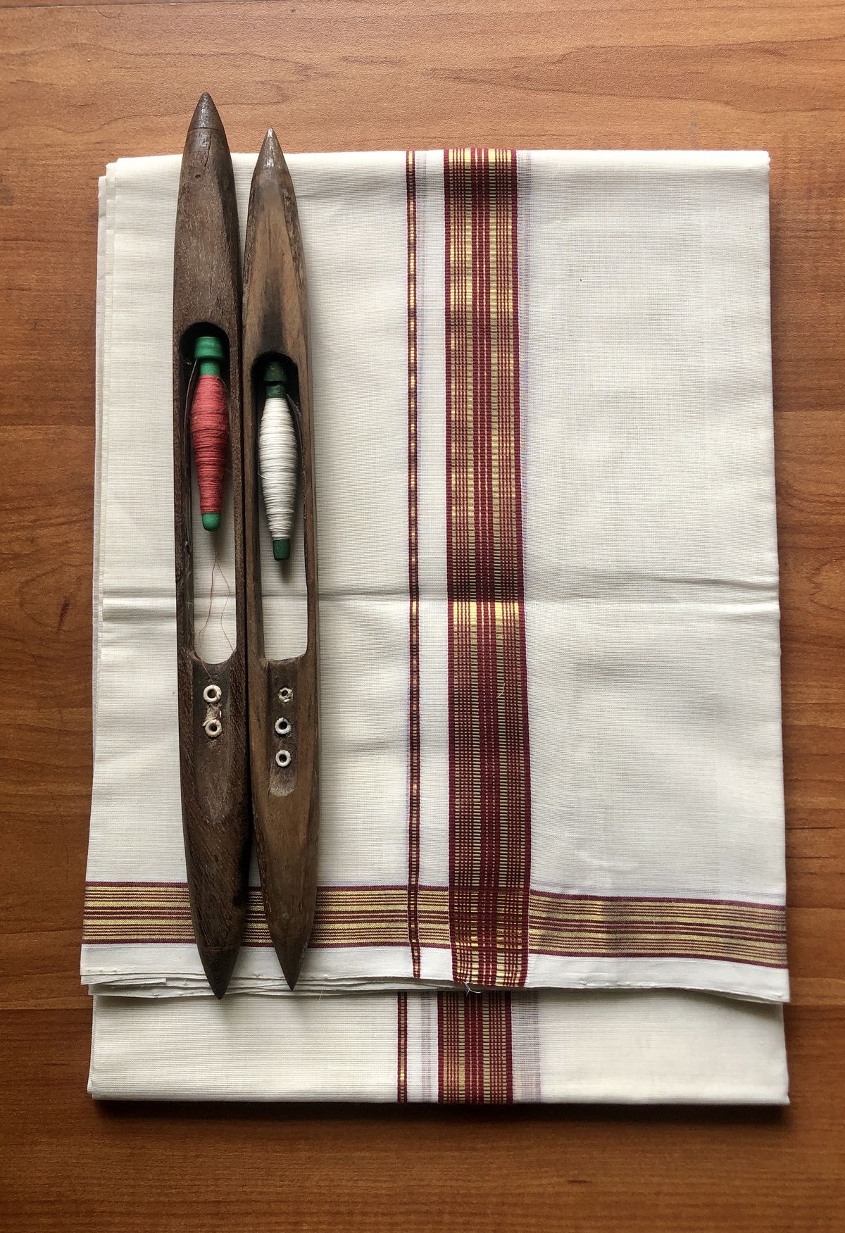 Home / Premium Handloom / Premium Set Mundu / Golden Jari Maroon Fancy Set Mundu