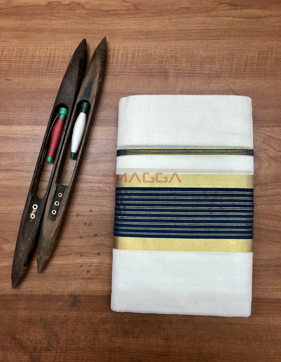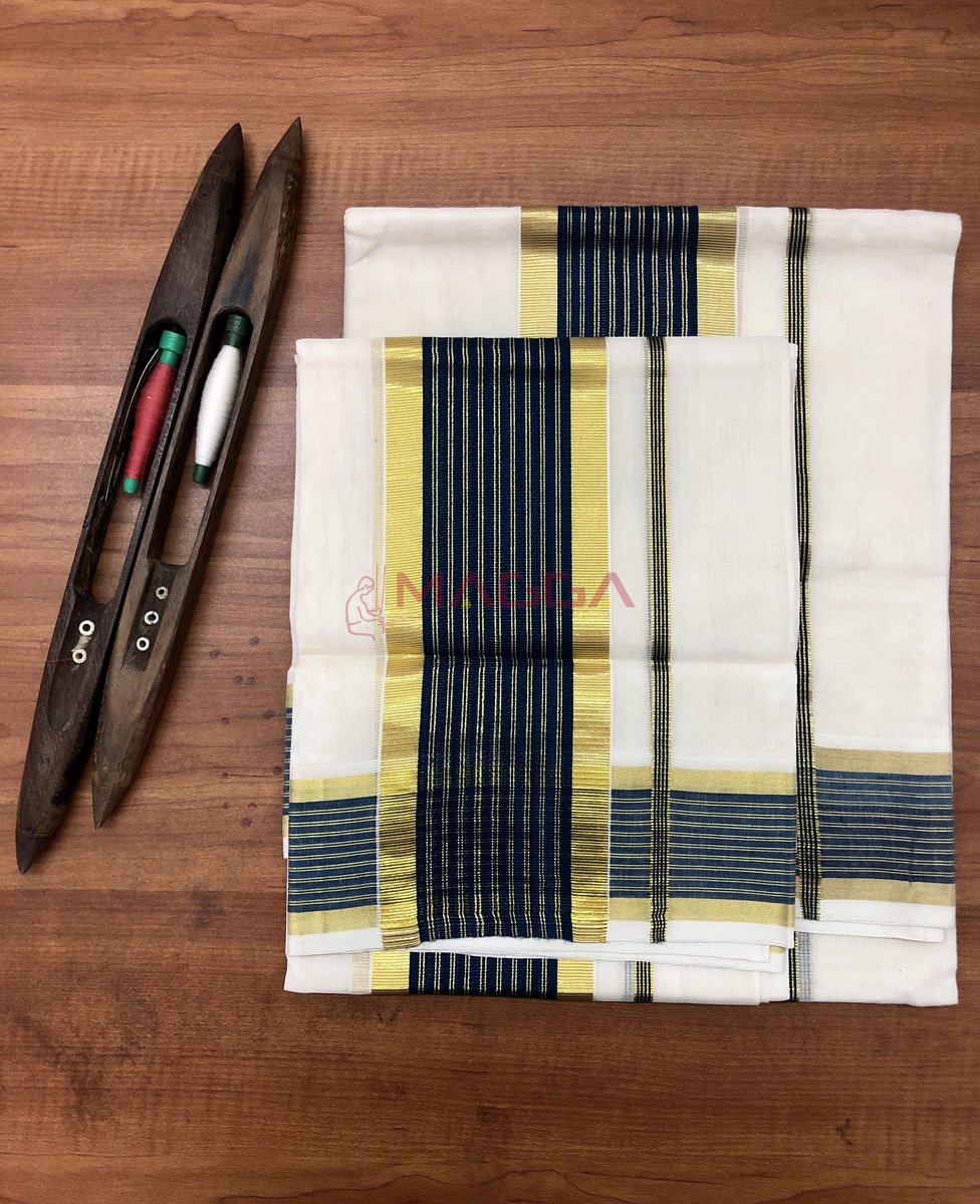Home / Premium Handloom / Premium Set Mundu / Golden Jari – Peacock Blue Set Mundu