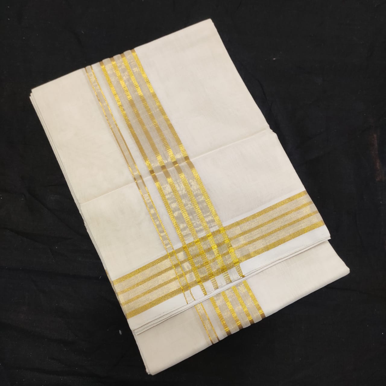 Home / Premium Handloom / Premium Dhoties / Dhothi / Golden Jari Striped Boarder Handloom Dhoti/Veshti