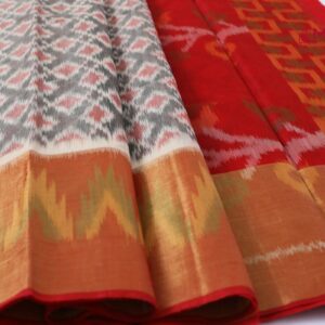Grey Handloom Pochampally Ikkat Silk Cotton Saree