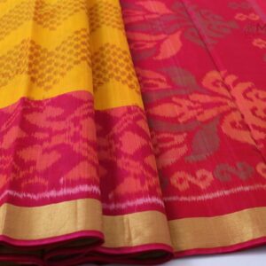 Yellow Handloom Pochampally Ikkat Silk Cotton Saree