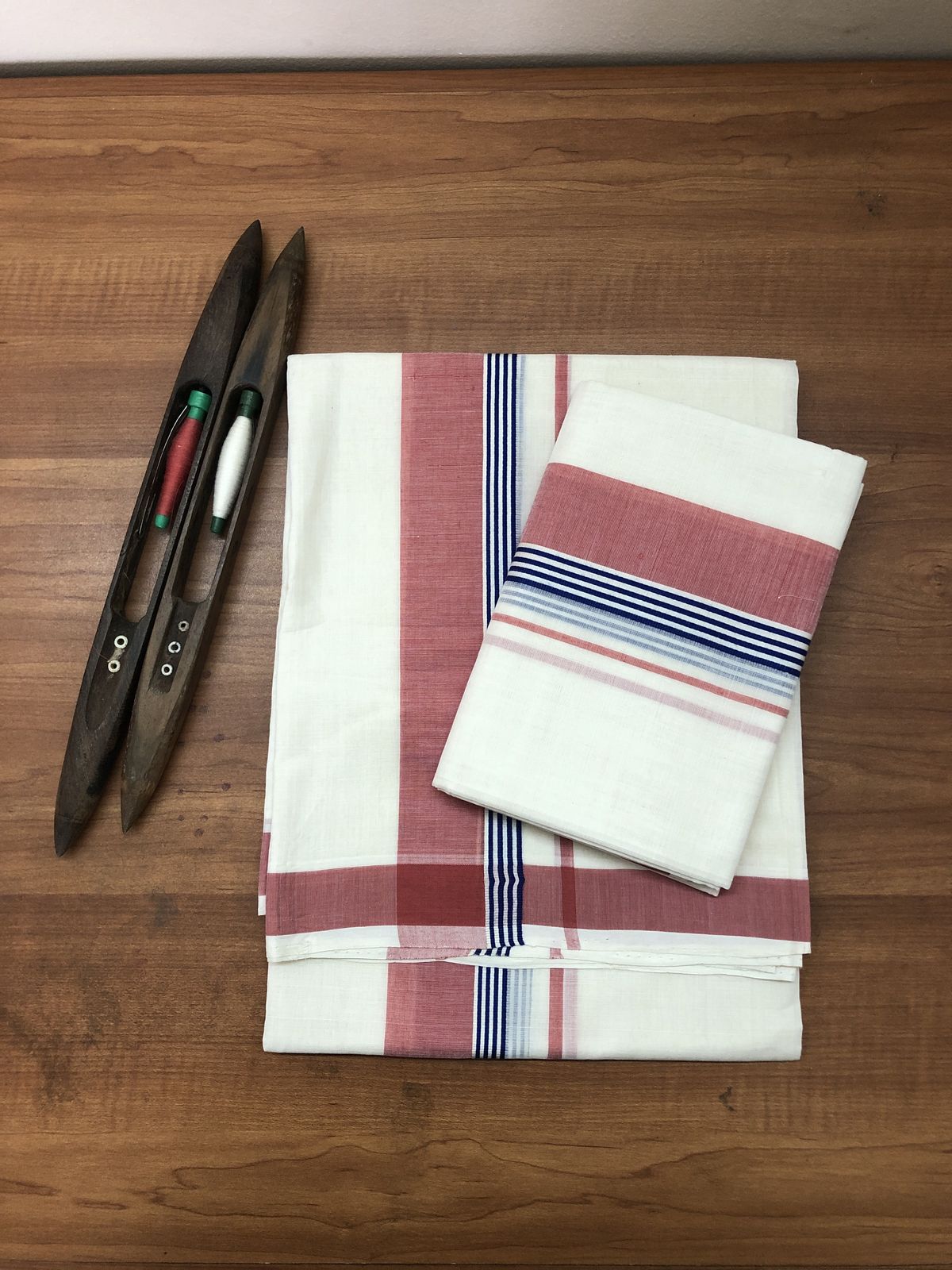 Home / Premium Handloom / Premium Set Mundu / Pink – Navy Blue Set Mundu