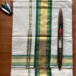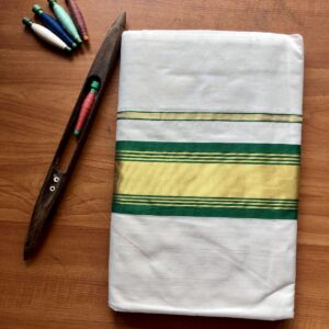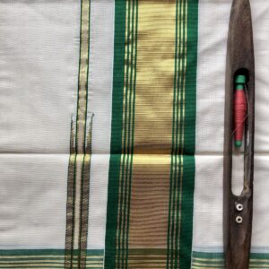 Pure handloom kerala kasavu Saree with swastik handbuttas all over body along with running blouse