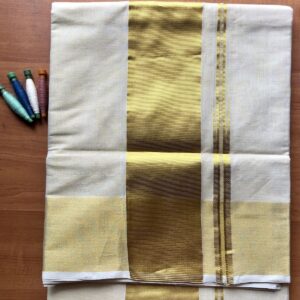 Pure Handwoven Temple Designer in Silver and Golden Jari on Both borders with running blouse.