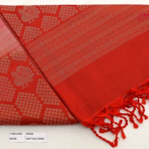 Handwoven Antique Bright Crimson Red Soft Silk Saree